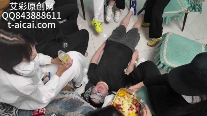 音乐停止的那一刻,争先恐后往脸上坐,把脸部完全物化成凳子了。口水+口嚼食物轮流喂食。