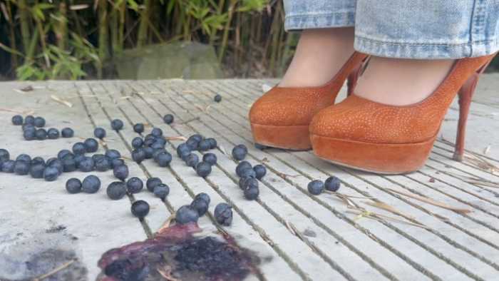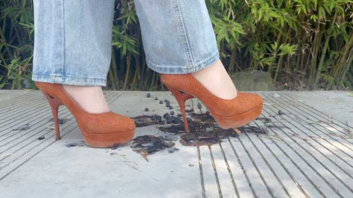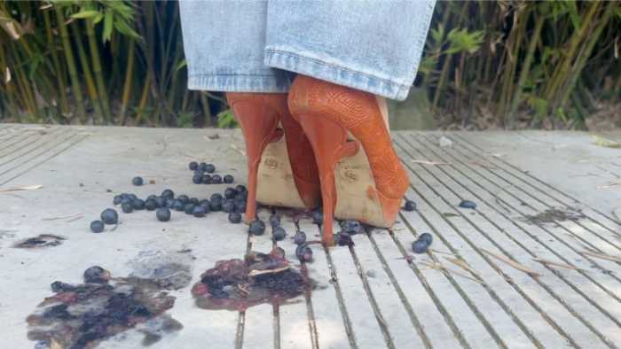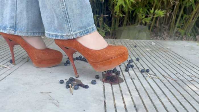 1.用细鞋跟一个个把蓝莓戳烂爆汁,听到高跟鞋在地面上咯哒咯哒的声音,戳烂的时候想要听到清晰的收音