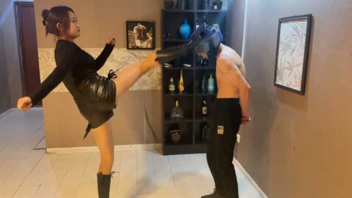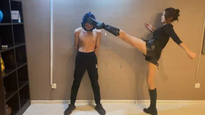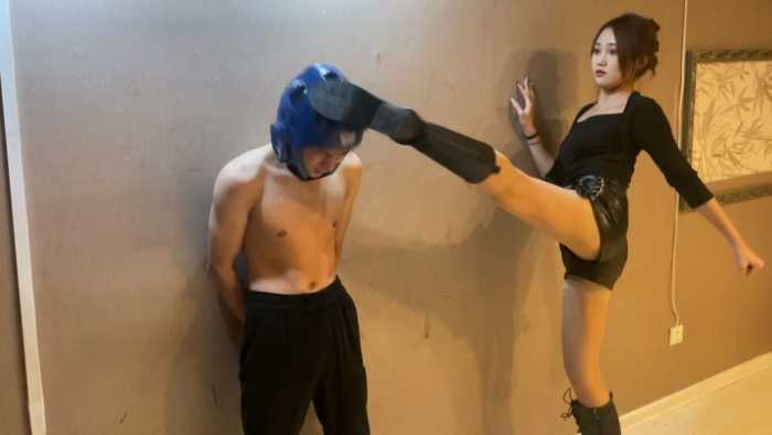 内容简介: 已隐退的汐柠小主经典作品,由于汐柠有舞蹈和跆拳道的功底,腿部柔韧度很高,可以轻松的高踢腿击头,加上黑色高通皮靴的加持,力度特别恐怖,男M戴着头部护具都承受不住阵阵眩晕,之后干脆去除护具丝袜脚踢击,那种清脆的啪啪声听着特别过瘾,踢晕之后汐柠又开始了地狱般的踢裆,身材弱小的男M根本承受不住汐柠小主专业的腿法,很快就被废掉了。