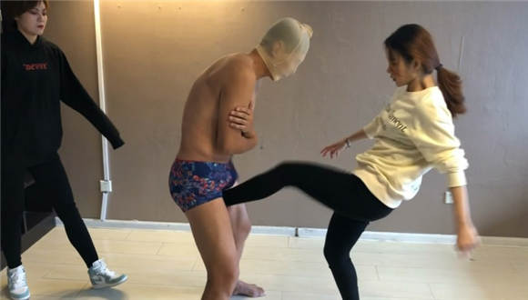 主要内容:两位美女路遇一个暴露狂,变态本想展露一下自己的“特长”,结果被两名美女活活踢废,开始是正常运动装踢,后来换成性感高跟丝袜,又猛踢了一轮。。。最终暴露狂终生不举