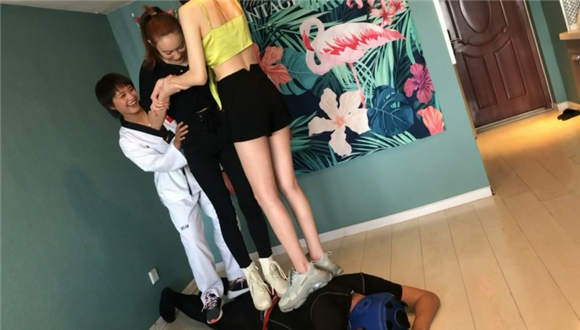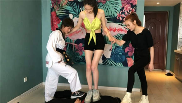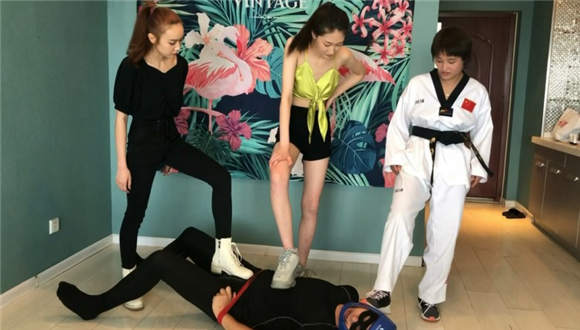 主要内容:两位舞蹈女学员在专业女跆拳道教练的指导下,对男M展开狂风骤雨般的踢击,重度踢裆、后回旋踢击头、高抬腿踩踏…..等等高难度的腿技,令男M叫苦喋喋。最后三人联合出击,男M下体怕是废废了。