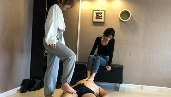 内容:两位美主穿着棉袜皮靴,对M展开长达一小时的脚责调教。先是皮靴踢裆踩踏,口水责罚之后用胶带封住嘴,然后是强制性棉袜除臭呼吸,脱了袜子舔脚,最后两位美主还光着脚踩碎香蕉和酸奶混合后让M用舌头舔舐干净。片长1个小时让广大同好一次看过瘾。