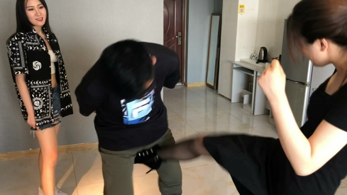 内容:片中两位小主玉儿和宁宁饰演的是替闺蜜教训出轨的渣男前男友,玉儿利用美色将渣男引诱到酒店,之后被宁宁从背后踢裆突袭击倒,之后两人便对这个始乱终弃的渣男展开地狱般的训斥和责罚。最终渣男昏死过去。。。。。