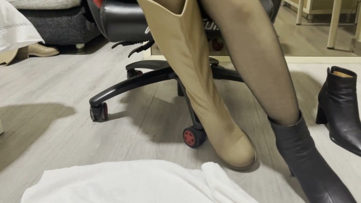 【黑丝诱惑】舔干净原味脏长靴和脏高跟鞋 YC-230308-9