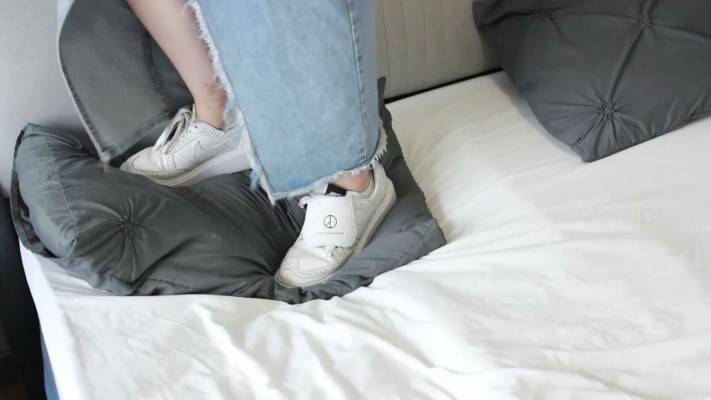 【黑丝诱惑】素人篇:大二学生晓俞小白鞋踩白床舔原味脏鞋底 YC-240906-6