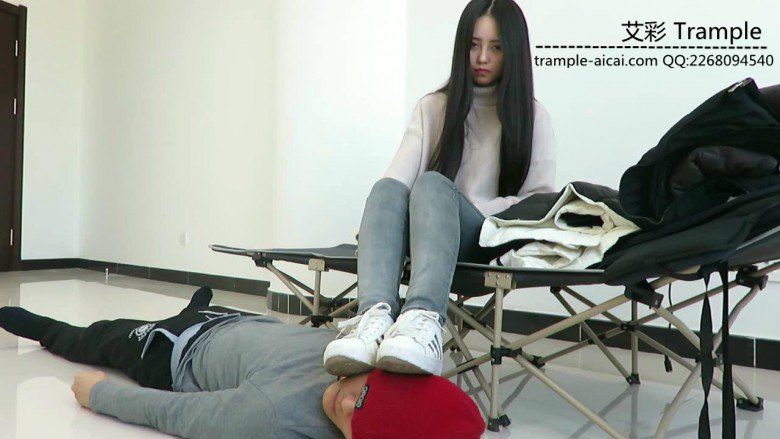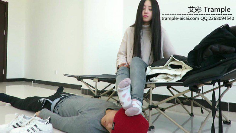 老师坐着在鞋垫身上换鞋,把自己的棉袜踩在鞋垫头上,鞋垫闻到的是老师脚下棉袜的味道,然后老师脚上有汗,脱下棉袜用裸足在贱狗脸上曾来蹭去,让贱狗闻舔,老师裸足超美请欣赏!