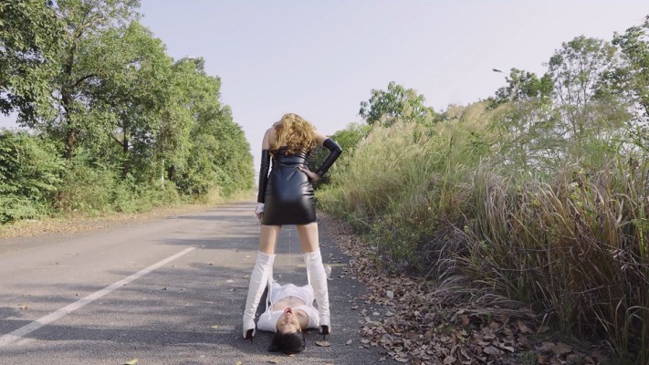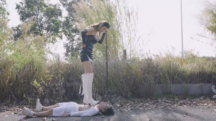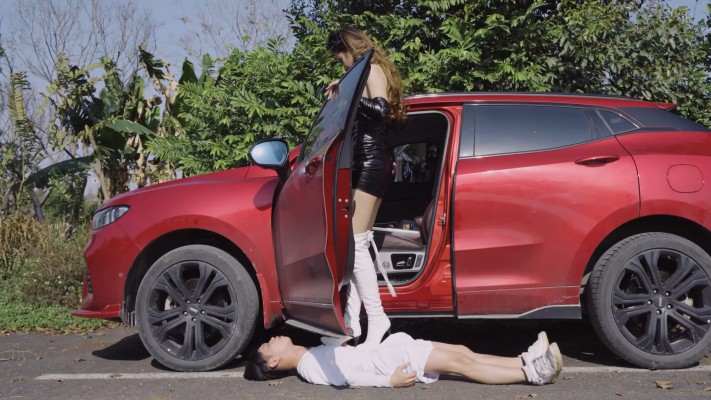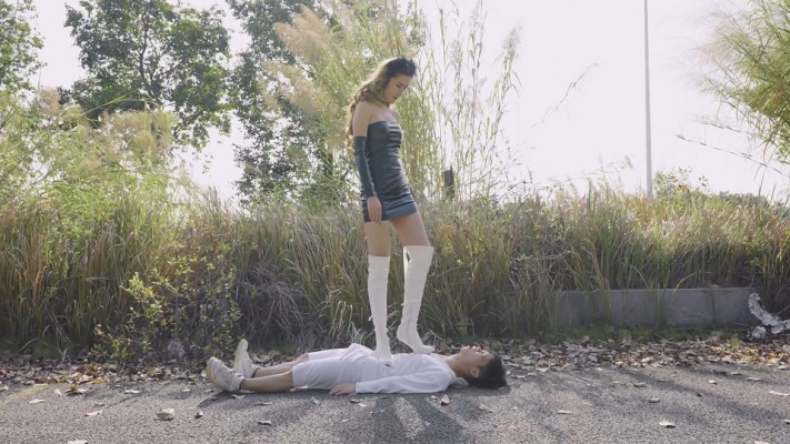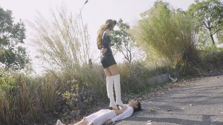 【内容简介】:在户外,尔岚穿着白色高跟长靴,踩着衣衫褴褛的奴下车。然后在路边开始高跟踩踏,用鞋跟踩穿奴的衣服并且撕开,奴露出了瘦弱的躯干,任由尔岚的鞋跟踩凹下去。