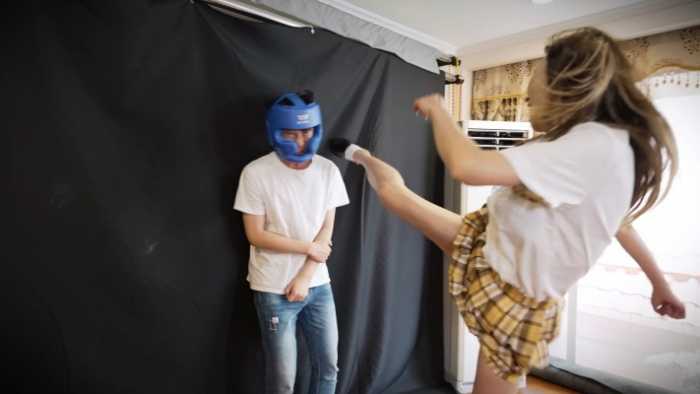 于是影姬直接对他开踢,踩着脖子羞辱,连续不停地高抬腿踢头,瘦弱的小哥哥多次被暴击,