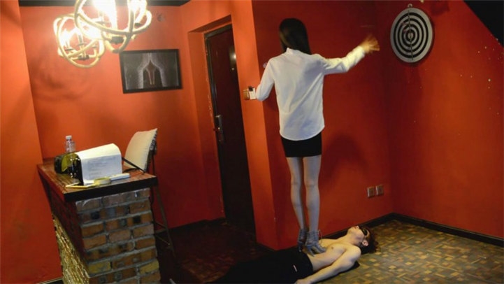 剧情:女神拉着她的小奴隶出去玩,但并不是让他玩的。踩着高跟鞋玩,脚会很累。那怎么办呢,就用奴隶的肉身当地毯,才好站些。女神完全没把脚下的人当回事。