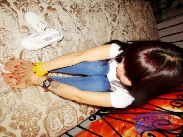 青春冷天使紧身牛仔裤坐脸