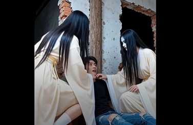 一群自诩勇敢的探险者,闯入古宅,悍然打断了白衣妖女们肃穆的召唤仪式。她们的愤怒,引发了空间的扭曲。一道血色裂缝中,一位身着红嫁衣、白发飘飘的绝美血魔,从天而降,轻盈落地。