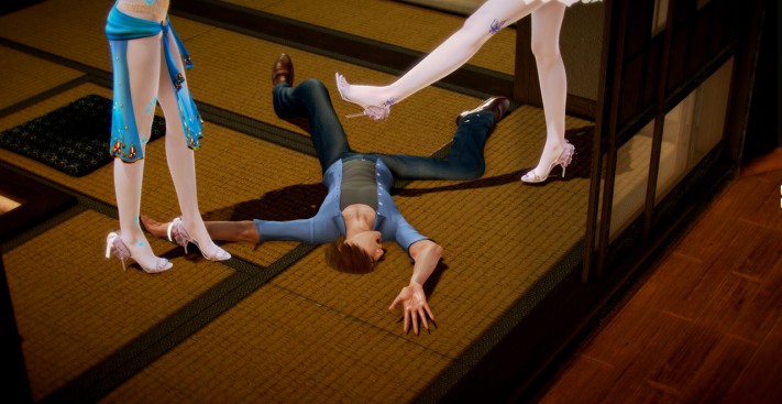 男子与两个白发魔女对抗,巧妙地躲过了魔女的攻击,最后却被魔化的女友背叛偷袭,惨死在魔女们的脚下。