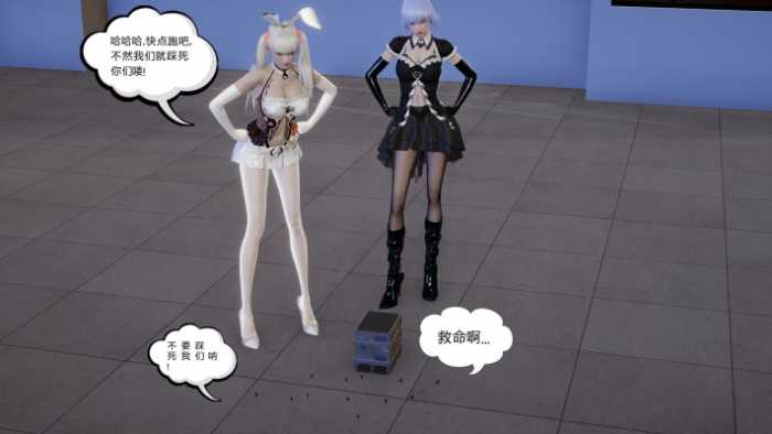 小萌让小人们出来不然就踩死他们 而小可觉得猫抓老鼠更有意思 如果被抓到就要被惩罚 小几个小人开始四散逃跑两个妹妹就开始踩死他们! 在房间的各个角落找到小人 小可找到一个就抓起来吃掉! 小萌抓到一个就捏死 ,小可又找到很多人躲在一起 之后放在手心 想了想决定把他们穿进丝袜里 小萌找到一群人 放在手心和他们说自己走到嘴里 就不咬死他们 等他们爬进去用舌头玩一下直接吞下去。