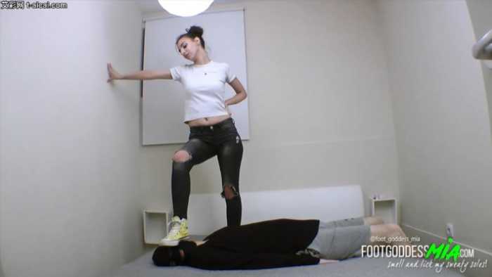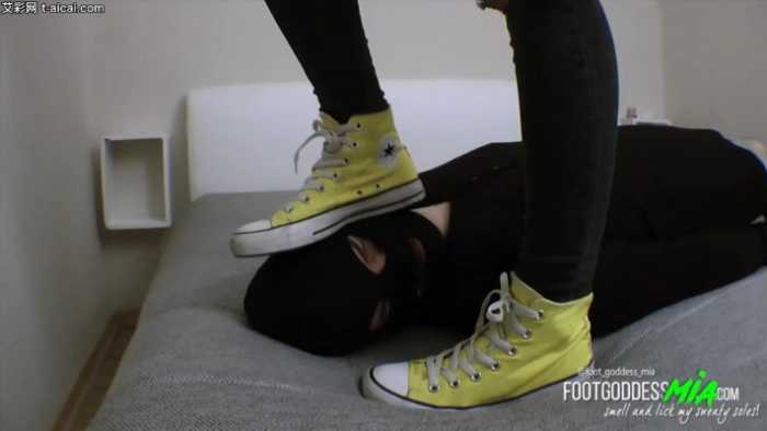 被GoddessMia帆布鞋臭丝袜脚踩脸闻舔脚!隔着臭丝袜舔脚 bf21323