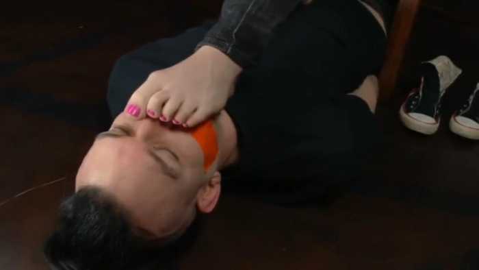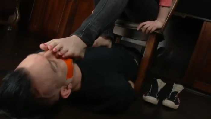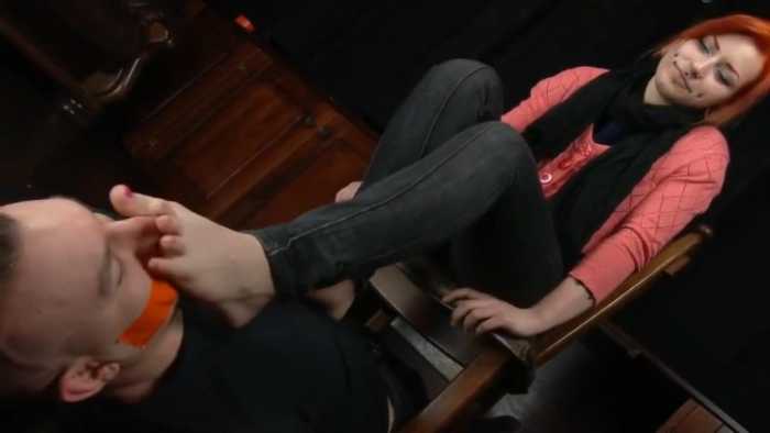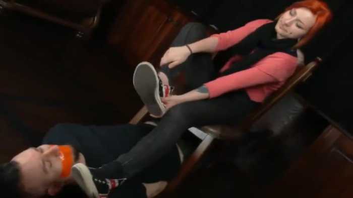 红发美女帆布鞋裸足美脚强迫贱狗奴闻脚臭玉足深喉 JS251105~3