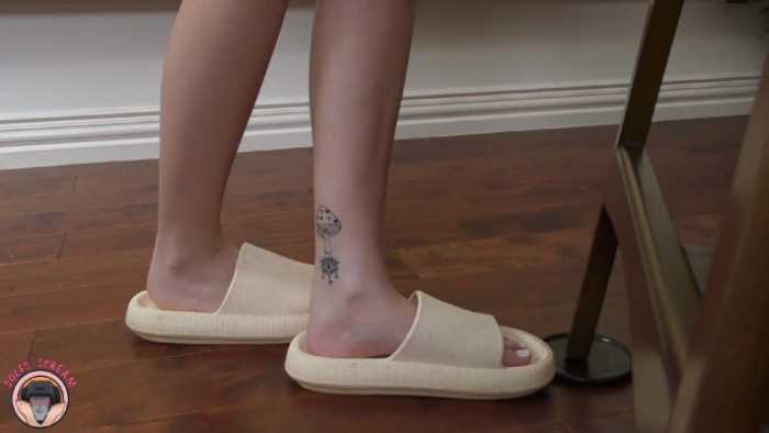 神仙颜值Evans女神凉拖白嫩汗脚搭在小黑身上!让他闻舔除汗除臭JS251123~3