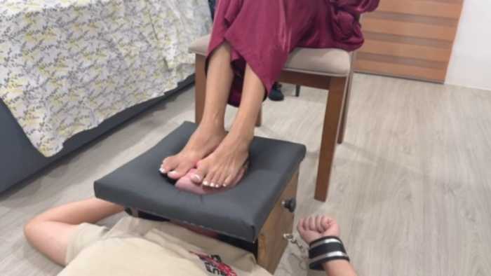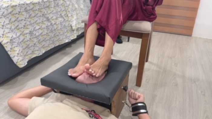 简介:无情女主裸足踩脸擦脚汗除臭,奴脸当脚垫吸脚汗,固定强制踩踏人脸盒子,重度恋足调教脚奴。