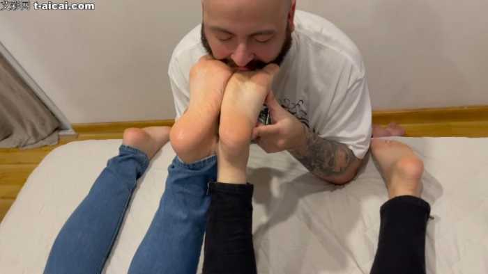 大胡子贱狗给Grazi和Lana女神啃脚后跟嘬脚趾清理死皮和污垢!bf4157