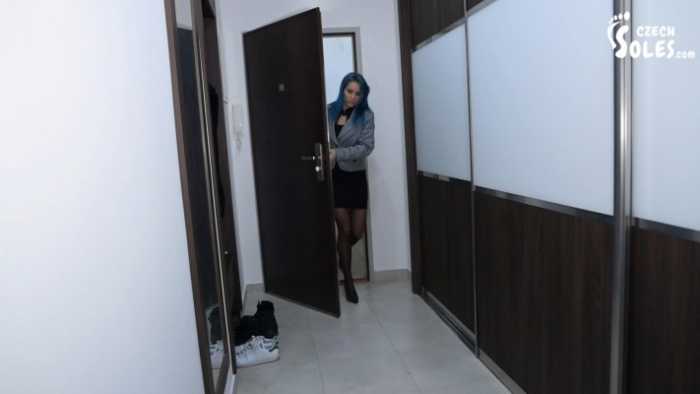 贱男自己在家戴着耳机偷看恋足小电影,女友下班回家,贱男没听见,被女友抓了个正着!原来你有这个爱好!那就好好伺候伺候我上班劳累一天的酸臭丝袜脚吧!于是,贱男沦为了女友的脚奴,被女友踩在脚下,言听计从,俯首帖耳。。。
