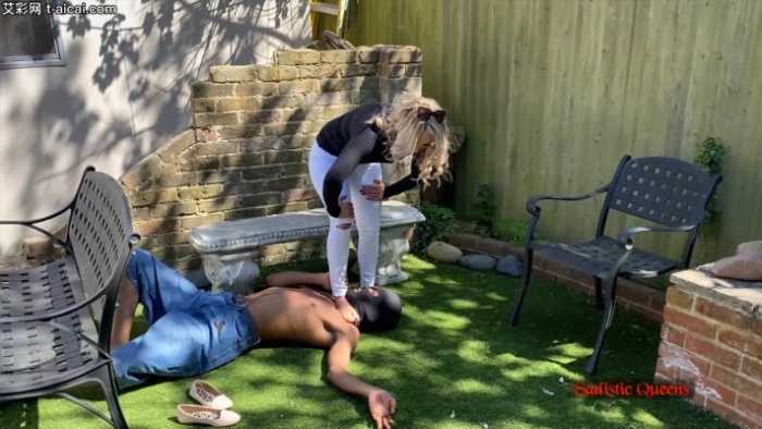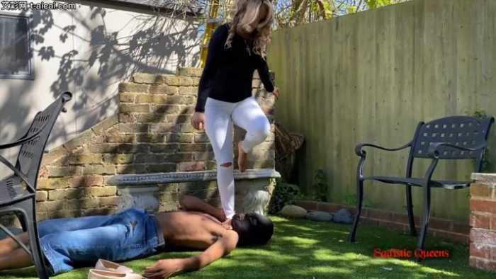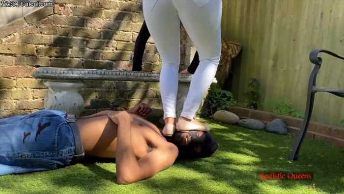 残忍美丽的Courtney女神,平底鞋臭汗脚照着黑人小伙的脑袋疯狂跺踩,全体重用脚尖站在小伙的脖子上,脚趾尖深深戳进喉咙的部位,把小伙脖子踩扁到了令人恐怖的程度。。。更过分的是,她竟然踩在小伙的脸上做蹲跳起,跳起和落下的一瞬间仿佛都能听到小伙头骨碎裂的声音,可怜的小伙脑瓜子都快被她踩碎了。。。这个女王实在太狠了,谁想被活活踩死的话找她就对了。。。