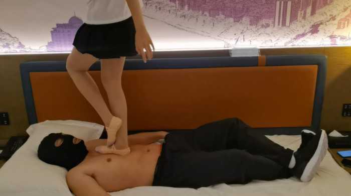 还得是细腿啊~穿上舞蹈鞋各种踮起脚尖踩,还有各种跳,后面脱掉鞋子用肉丝踩在毯子身上,全体重压在毯子肚子上,抓起毯子的手往自己身上拉,让肉丝脚被肚子尽可能包裹住,肉丝脚深深陷入毯子的肉里,踩着毯子的头让他闻,居高临下俯视下,毯子像条小狗狗~踩到他咳嗽我的脚也不离开~,头脖子肚子胸口一个没落下,还把脚伸进头套里,因为有头套压着所以毯子的面部和肉丝脚是亲密接触,最后坐在毯子肚子上,用肉丝脚抚摸着毯子的脸。