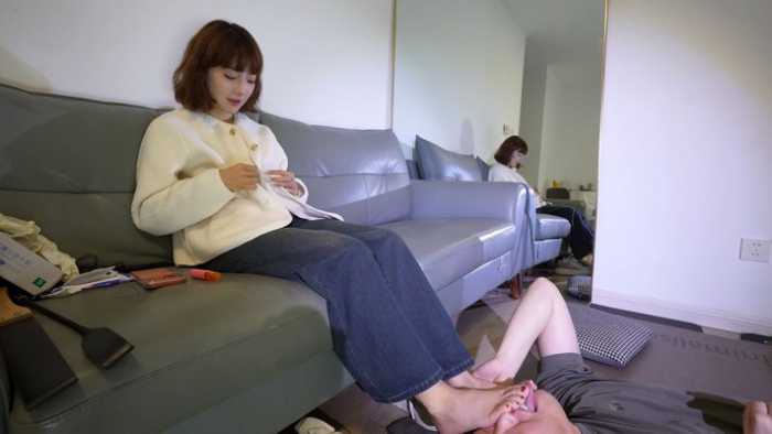 内容:脚奴日常侍奉桃子女王,用舌头清理脏脚底,脚趾缝,搓脚板清理死皮脚泥吃下去。