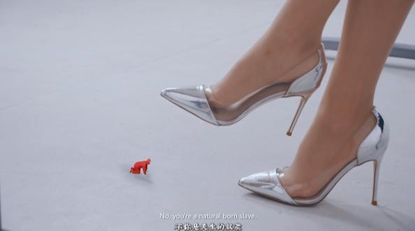 小人痴恋女巨人的玉足与高跟,将她的一切奉若神明。女巨人却视他如尘埃,言语羞辱间,纤足覆着漆皮高跟狠狠踏下。他在鞋底的碾压中碎裂成烬,未及发出一声哀求。灵魂挣脱躯壳的刹那,仍固执地缠上那抹雪白足踝,随她的步履,永坠无边追随。