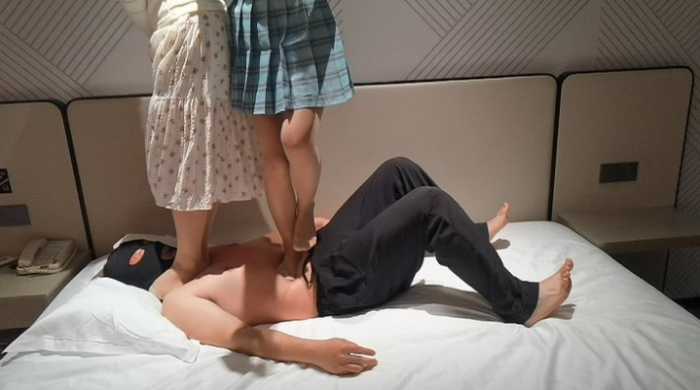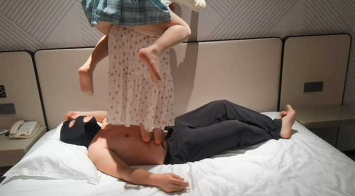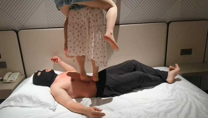 重新回归的暴力踩,单人超高跳,双人分别肚子、头、脖子快速跺脚、脚尖压迫,在不停动,不停跳,交叉不同时快速踏步,前一脚的痛觉还没消失,下一脚的痛觉又紧跟着上来,舔脚不停歇,还有双人背着踩,还是脚尖噢~直接可毯子痛成V字形,肉眼可见的痛