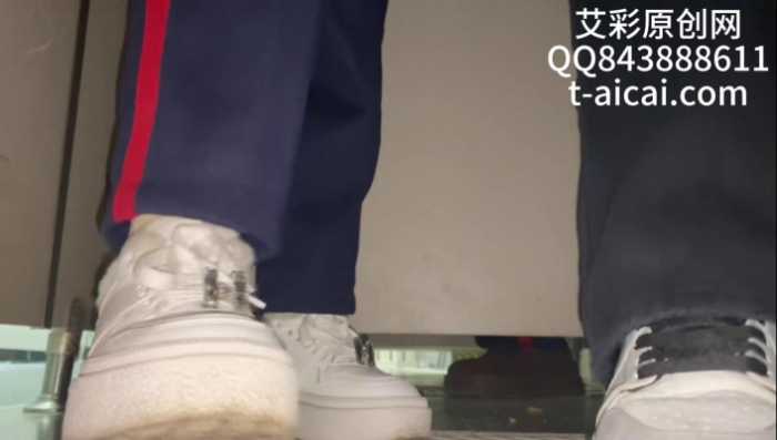 真实高中女厕所内,踩着面包片擦干净女生们上厕所残留下的圣水,后面还有其他正在上厕所的女生。