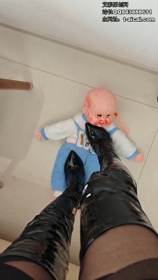 跳踩后换上漆皮高跟靴,视角转为女主俯拍视角,拿掉毛巾发现婴儿已经吐xue而亡,女主蹲踩上去发现还有微弱气息,起身同时碾踩脖子和jj