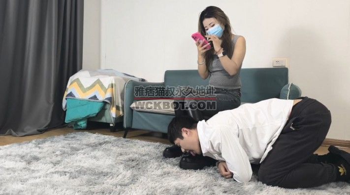 内容:肉肉扮演健身教练,一边跟顾客发消息一边让狗子舔靴子,跟顾客聊生气了就跺狗子,真不知道狗子是可怜还是幸福