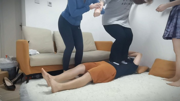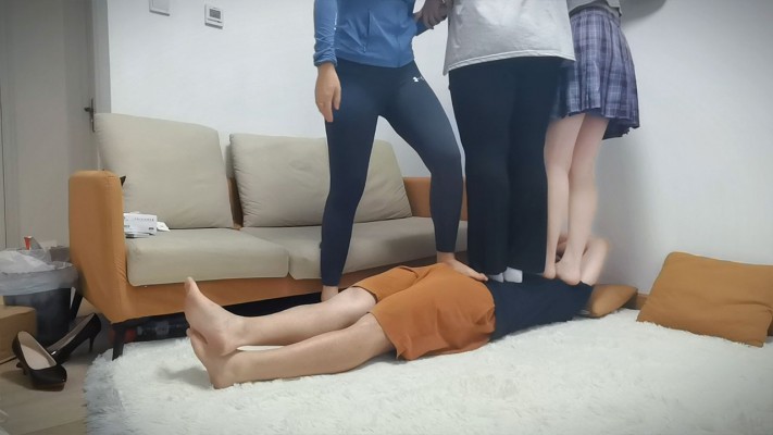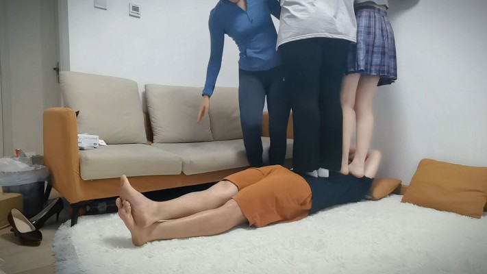 内容:高兴儿女王 带着闺蜜和妹妹 踩踏 蹦跳 跳跃 三人同时站在一个人身上 感受体重的压迫 中间 还有高兴公主抱抱着妹妹 一起踩踏 在人身上 三个人一起互相抱着踩在狗身上 让狗喘不上来气
