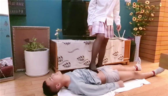 【00后蕬小乃】现实记录,黑丝高跟鞋全体重踩踏恋足