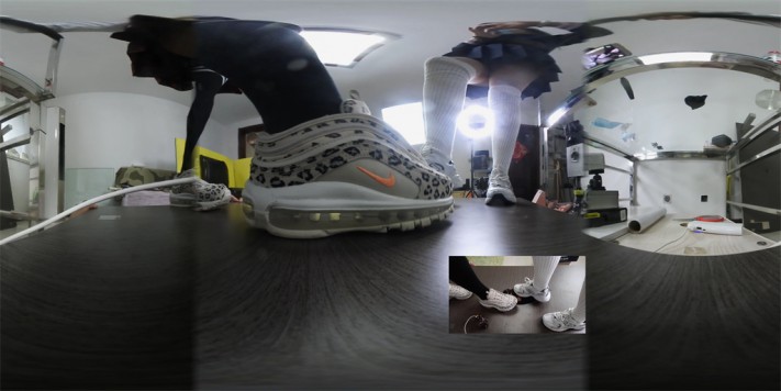 VR婧意双S全语言 学生装运动鞋长棉袜玩踩人脸地板 偷窥的代价