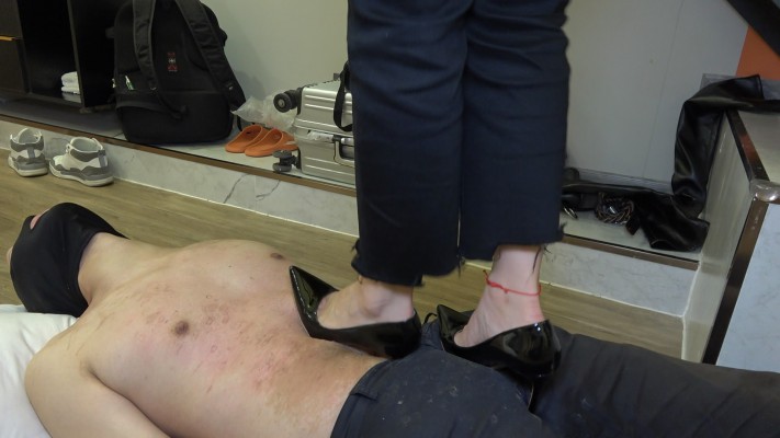 家畜身上已经千疮百孔,可是他做梦都想着被主人高跟踩踏,坏坏的主人满足他,准备狠狠地踩他!高跟鞋踩裆,踩脖子,踩脸,狠踩乳头,跳踩,鞋跟不断旋转踩踏令家畜痛苦不堪,嘴里还一直说谢谢主人,身上又多了疮孔真是无药可救!