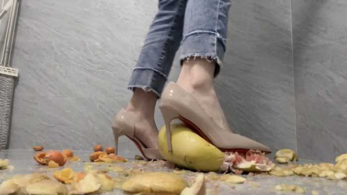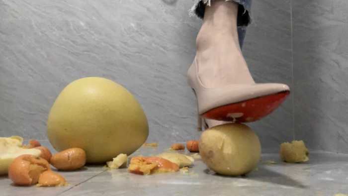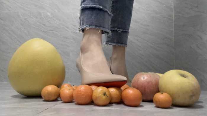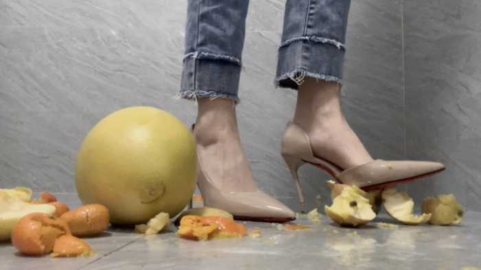 【莓子】高跟鞋加裸足暴力踩碎橘子、苹果、柚子 YC-250211-5