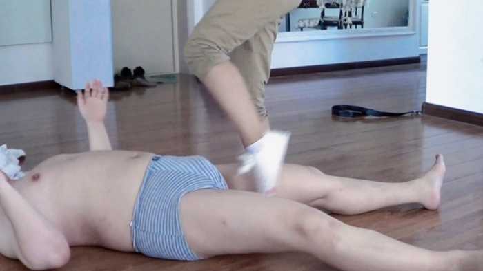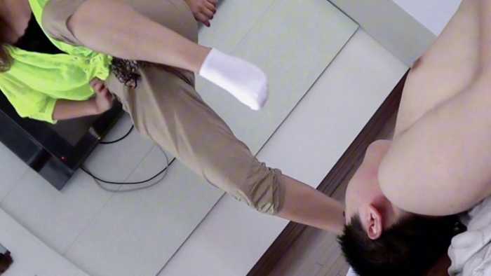 剧情:乞丐敲门讨饭,丹丹开门后乞丐发现只有丹丹自己在家,馋的直流口水,趁丹丹不注意图谋不轨,被丹丹挣脱,乞丐并不死心反复尝试,一开始丹丹还打算挣脱后逃跑,后来鼓起勇气爆揍乞丐,最后乞丐被虐的磕头求饶。