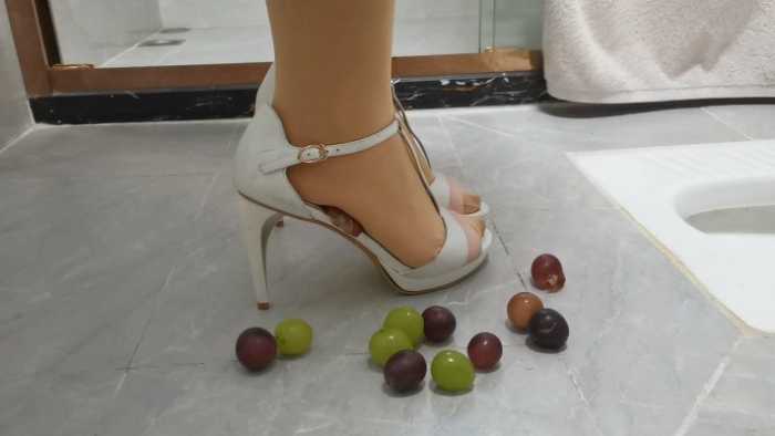 定制剧情,室内卫生间场景,将葡萄塞入高跟鞋内用脚在鞋子里面碾烂,将葡萄用丝袜踩,用大脚趾在鞋内一个个压扁,用鞋跟戳烂葡萄,最后把剩下的葡萄倒在地上,一顿狂踩。脱下高跟鞋,展示被葡萄汁水浸湿的丝袜