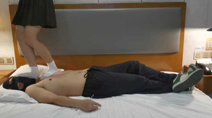 这个百褶裙+白袜穿搭看着挺有感觉的吧?应该都曾幻想过被这样踩在脚下把?小幸全程都是在重度踩,有点调戏,在闻和舔jio的时候有点语言,有点,但是不多,有点酸酸的,嗯,就是这种才会越踩越亢奋~我们的落脚声一直应该都挺响的?蹦蹦跳跳是家常便饭,白袜好像基本都是残影